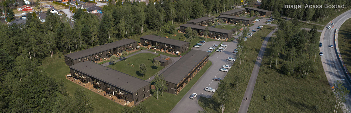 Denne løsning anvendes i flere modulære projekter, f.eks. i Acasa Bostad-udvikling i Oxelösund, Det er et stort byggeri med 82 udlejningslejligheder bygget med præfabrikerede moduler.