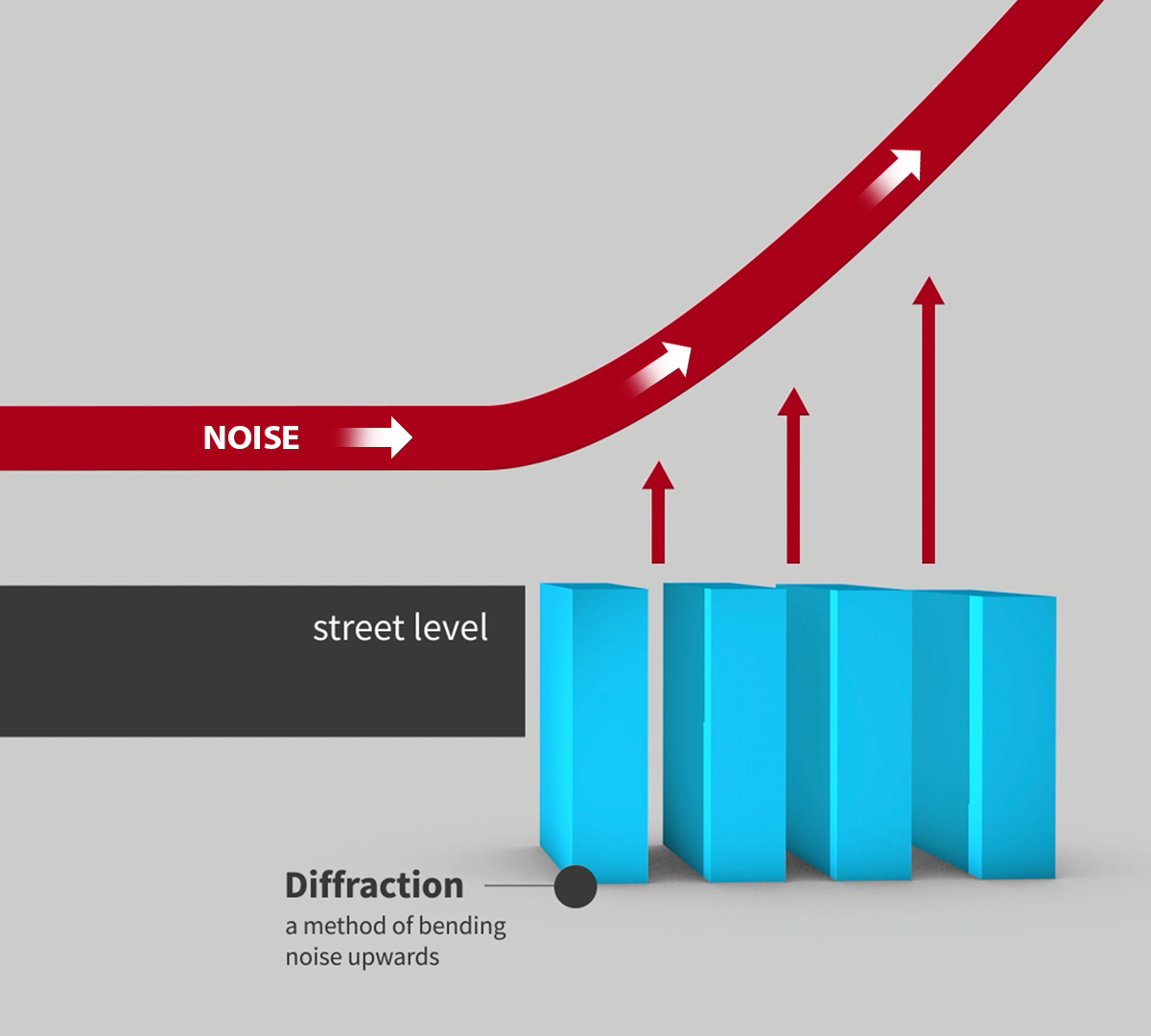 Melueste WHIS®Wall toimii diffraktioperiaatteen avulla. Tämä antaa tuotteillemme monia etuja muihin ratkaisuihin verrattuna: ne jättävät näkymät koskemattomiksi, ne ovat halvempia ja ne on helppo ja nopea asentaa. Niillä voidaan myös helposti saavuttaa lisämelunvaimennus olemassa olevissa tilanteissa.