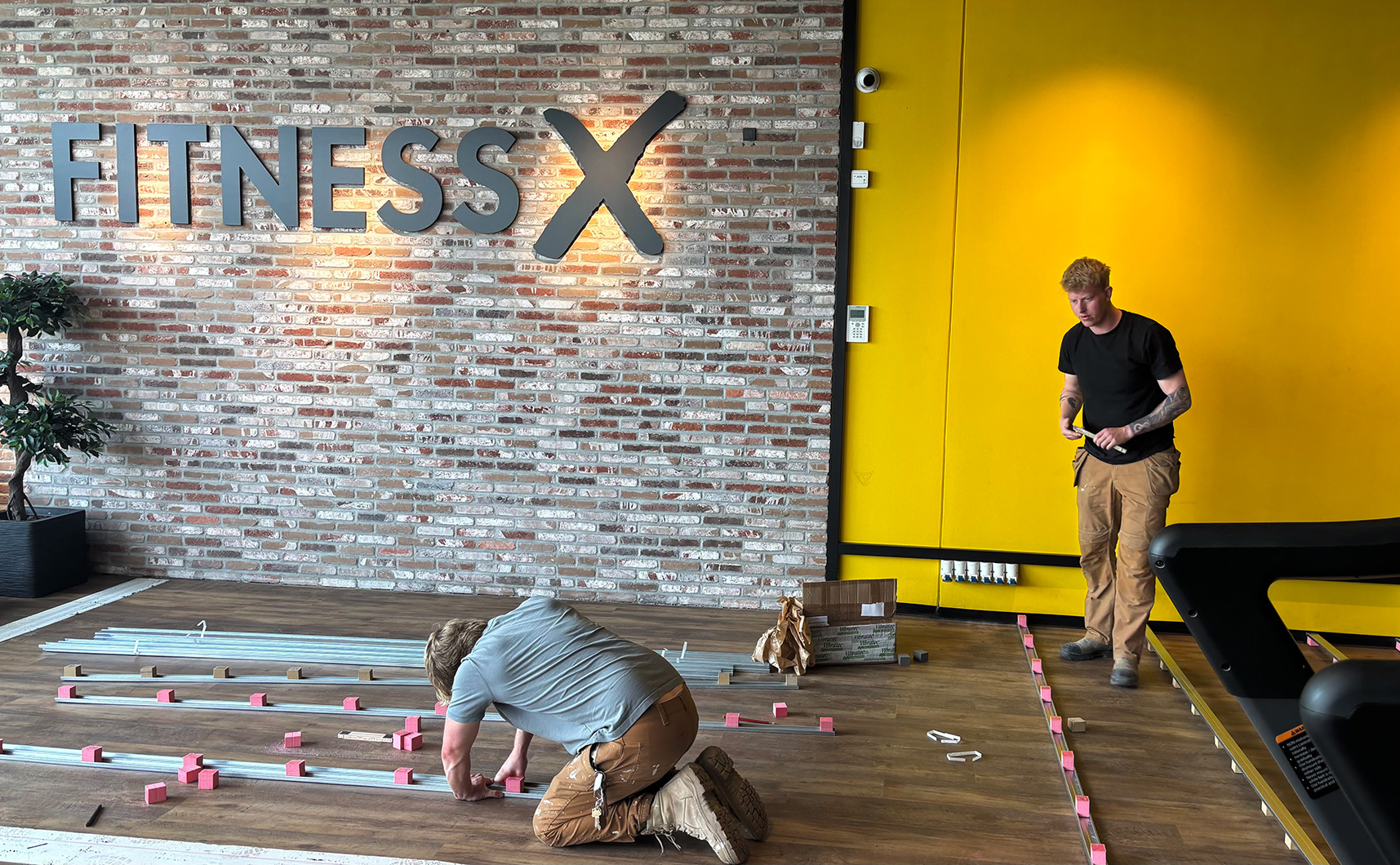 The FitnessX Gym is located in a modern urban environment surrounded by apartments, offices, and shops. Complaints had been received about audible structure-borne noise from treadmills placed directly on the concrete slab — noise that could be clearly heard in the apartments above.