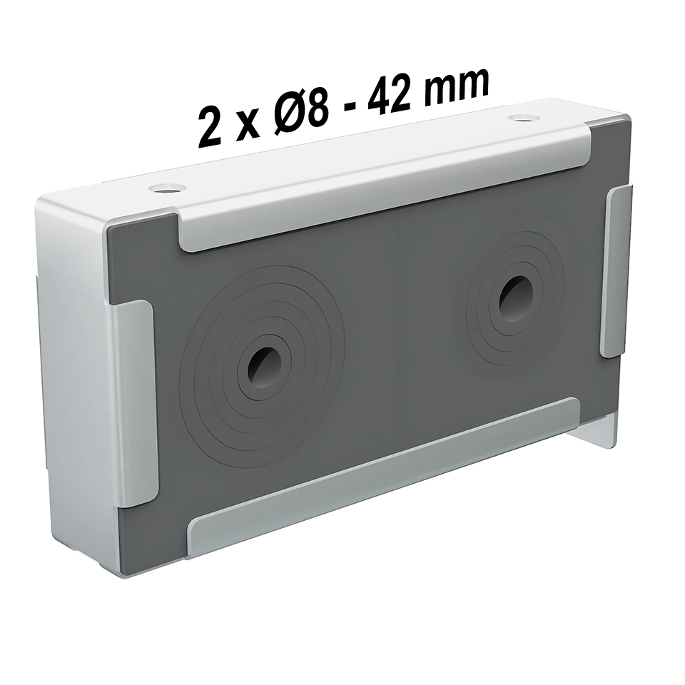 Dette produktet leveres med to sett med separate elastiske pads (type 1 og type 2), slik at det er mulig å ha både samme og ulike rørdiametre i samme rørklemme. Padsene har forskjellige perforerte hullkonfigurasjoner, og de er derfor merket med 1 eller 2 øverst i venstre hjørne. Når du monterer rørklemmen, må du rive av den eller de delene av puten som trengs for å tilpasse klemmen til riktig rørdiameter.