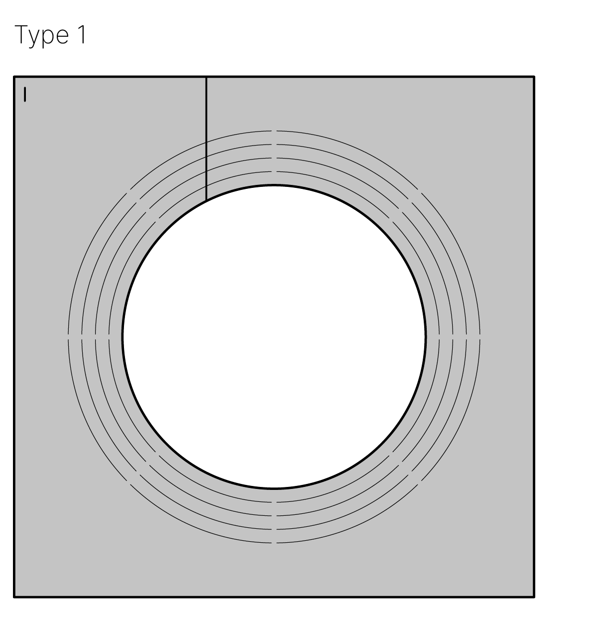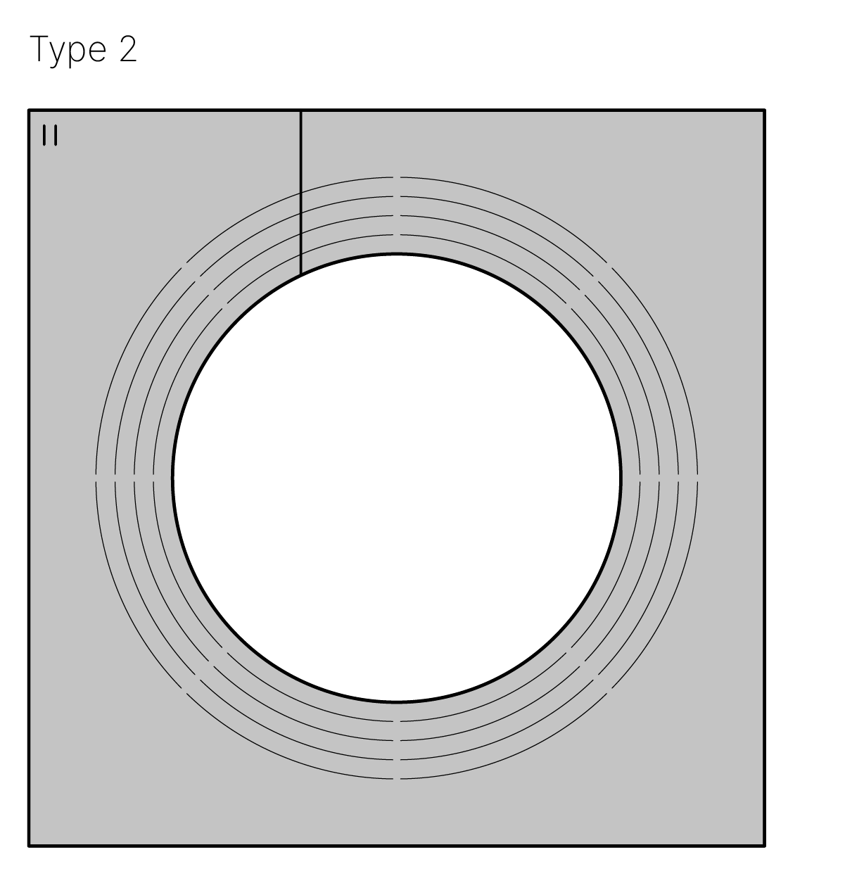 Dette produktet leveres med to typer elastiske pads. De har forskjellige perforerte hullkonfigurasjoner, så de er merket med 1 eller 2 i øverste venstre hjørne. Ved montering rives den eller de perforerte delene av puten som trengs for å tilpasse klemmen til riktig rørdiameter.