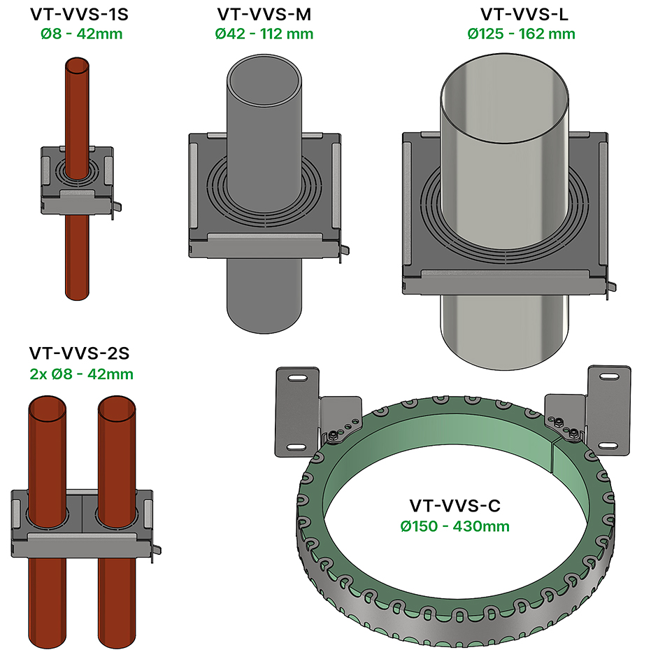 - VT-VVS-1L (enkel): Ø112-162 mm