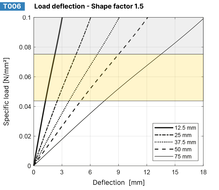 | Mechanical loss factor: | < 0.1 (DIN 53513; depending on frequency, amplitude, preload and temperature) |