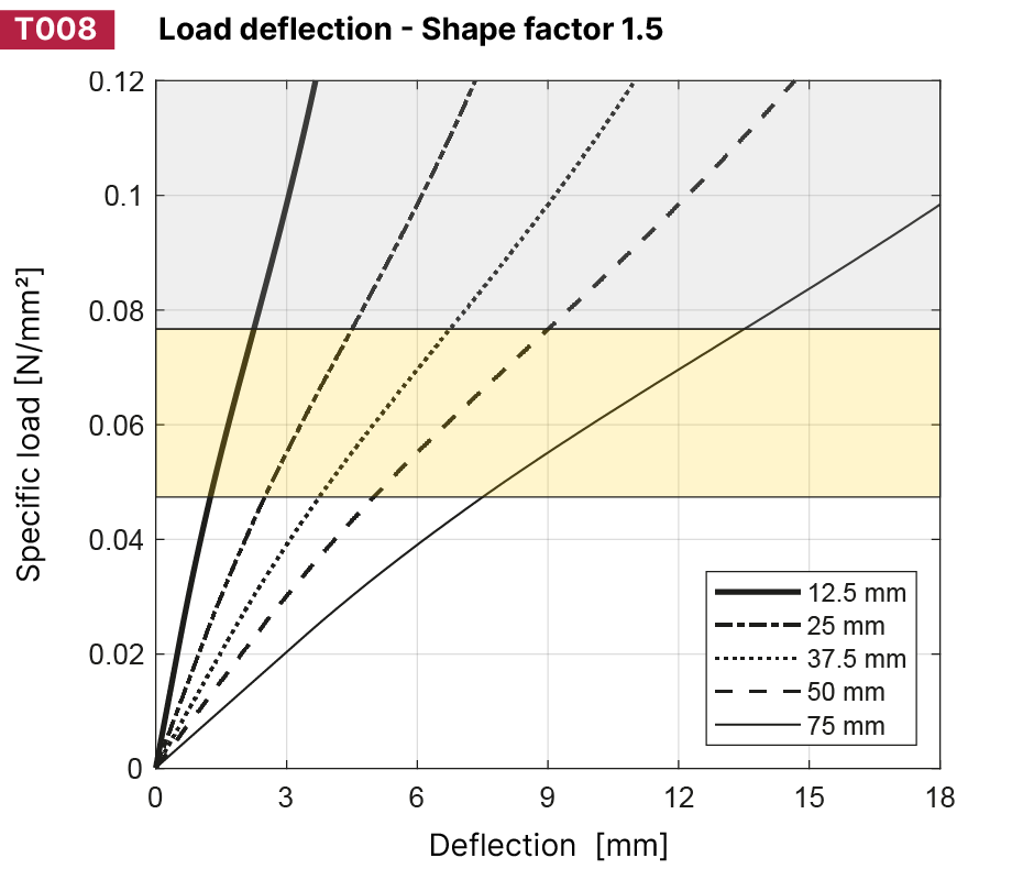 | Mechanical loss factor: | < 0.1 (DIN 53513; depending on frequency, amplitude, preload and temperature) |