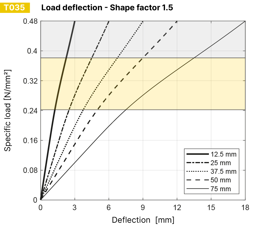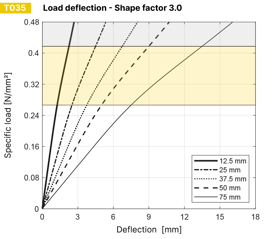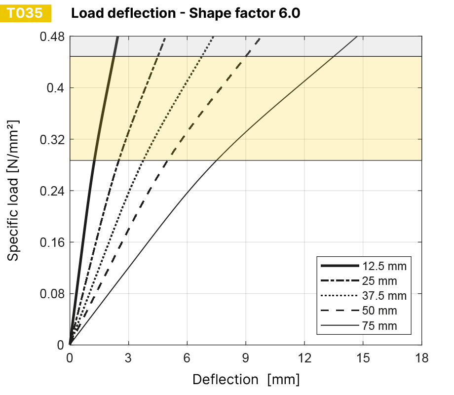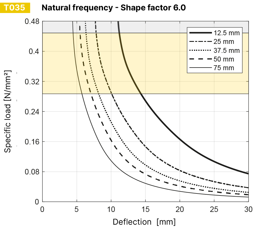 | Mechanical loss factor: | < 0.1 (DIN 53513; depending on frequency, amplitude, preload and temperature) |