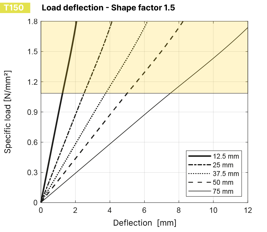 | Mechanical loss factor: | < 0.1 (DIN 53513; depending on frequency, amplitude, preload and temperature) |