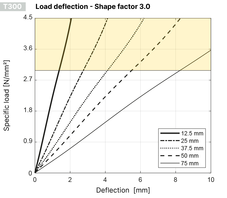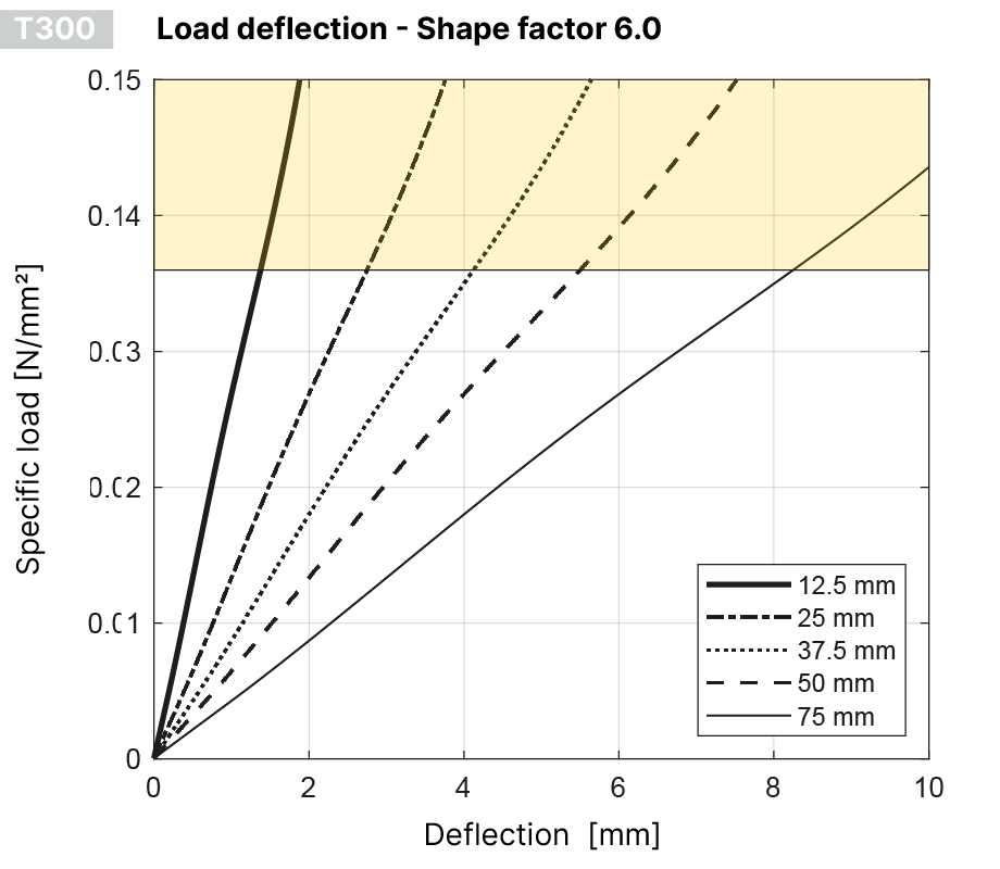 | Mechanical loss factor: | < 0.1 (DIN 53513; depending on frequency, amplitude, preload and temperature) |