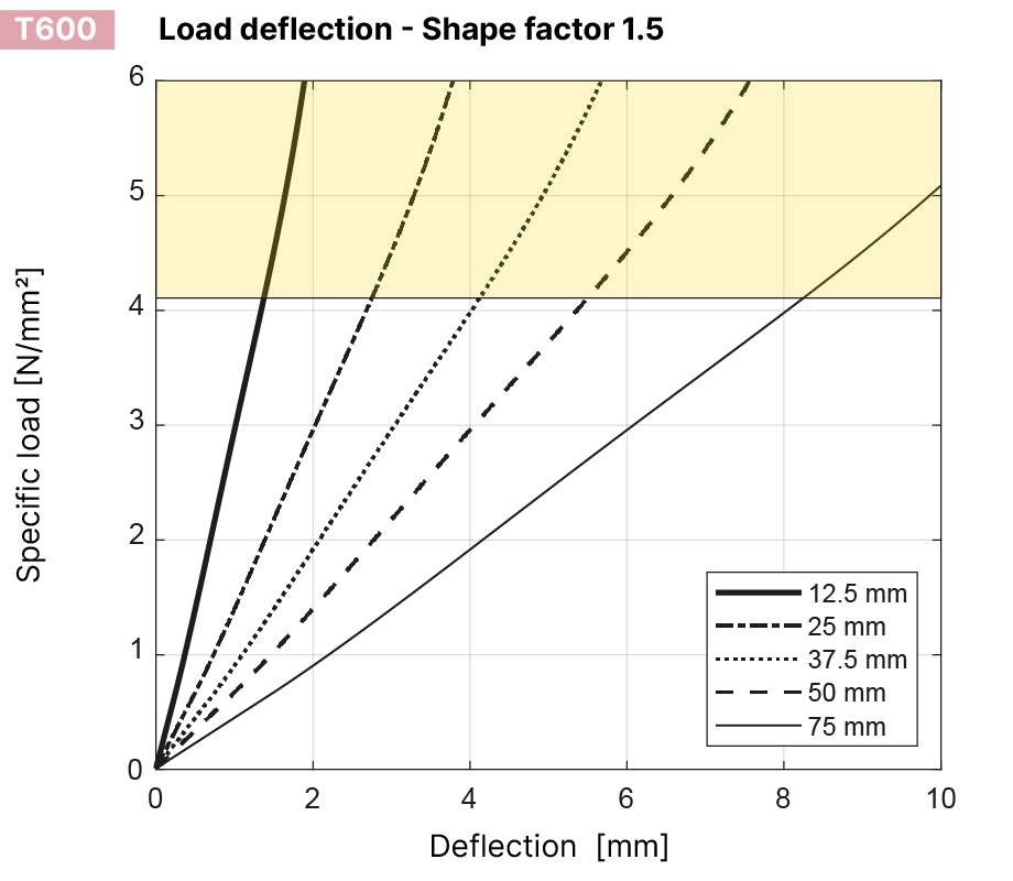 | Mechanical loss factor: | < 0.1 (DIN 53513; depending on frequency, amplitude, preload and temperature) |